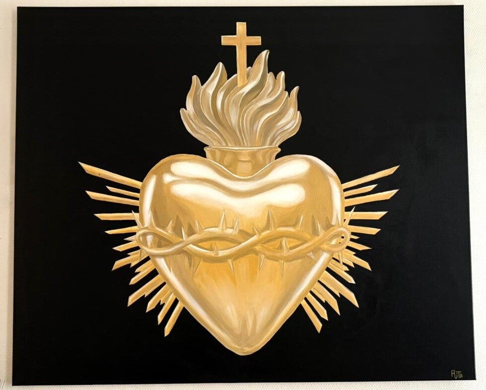 Le Cœur Sacré de Jésus que j’ai décidé de représenter en or, tant il est précieux pour moi, symbolise un amour incommensurable et un engagement spirituel profond. Ce choix, empreint de dévotion et de respect, reflète l’importance que revêt ce symbole dans ma vie. L’or, avec sa pureté et son éclat intemporel, est selon moi le matériau parfait pour traduire la valeur infinie que je lui accorde. Chaque détail de cette représentation témoigne de la foi, de l’amour et du lien sacré qui m’unissent à ce Cœur divin.